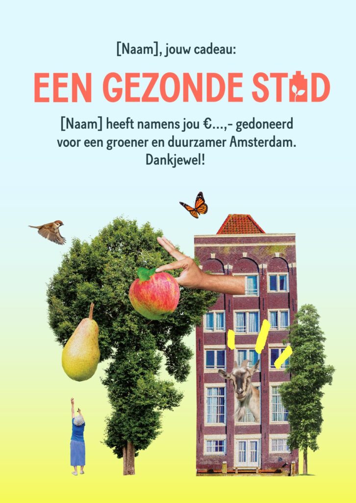 Wil jij helpen Amsterdam groener en gezonder te maken? Word Stadsvriend van De Gezonde Stad, al vanaf €2,50 per maand! Zo bouw je mee aan een leefbare stad die voedt, verbindt en in balans is met de natuur.